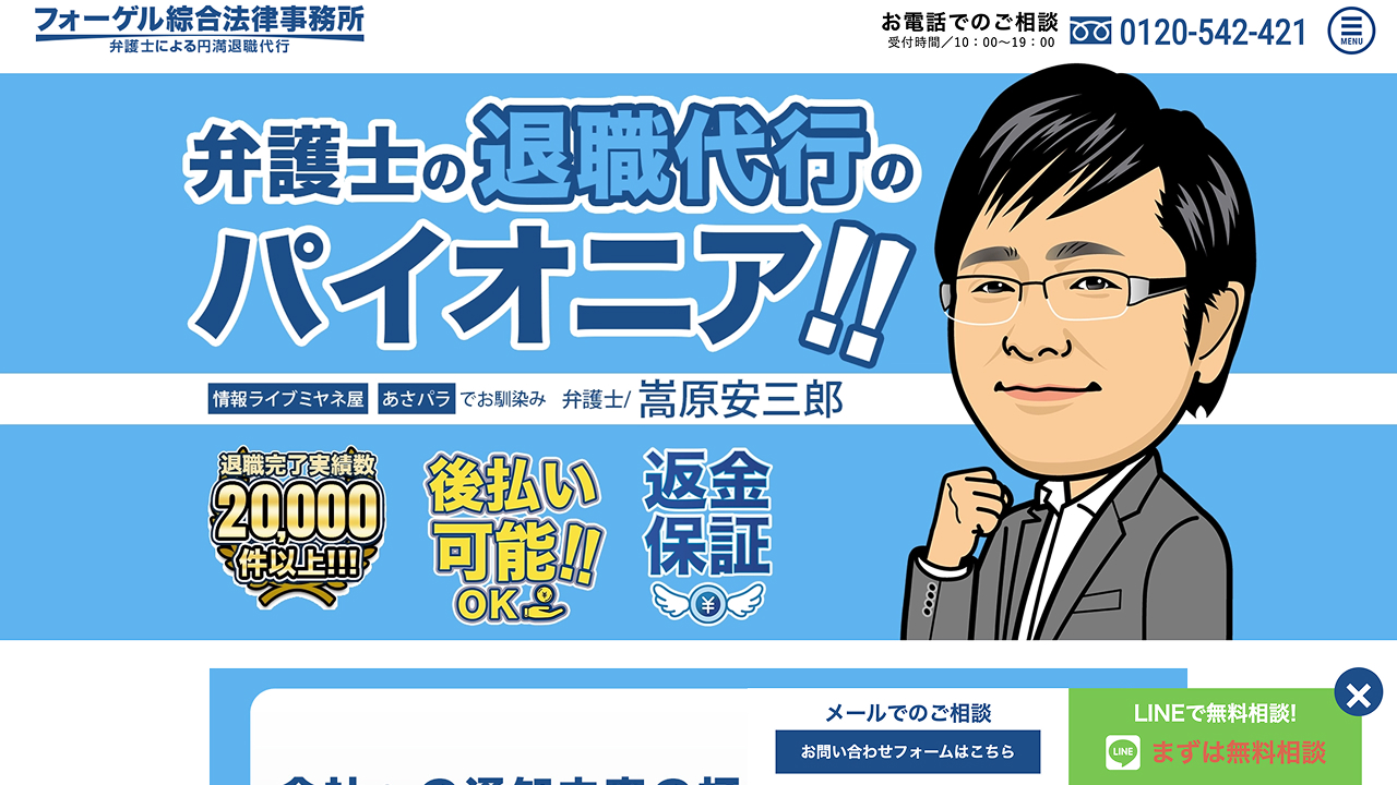 リーガルジャパン | 19,800円 詳細を見る | 「辞めた後の生活費が心配」という方に特化。 失業保険の給付サポートが充実しており、金銭的な不安を解消しながら次のステップへ進むための土台作りまで手伝ってくれます。 |