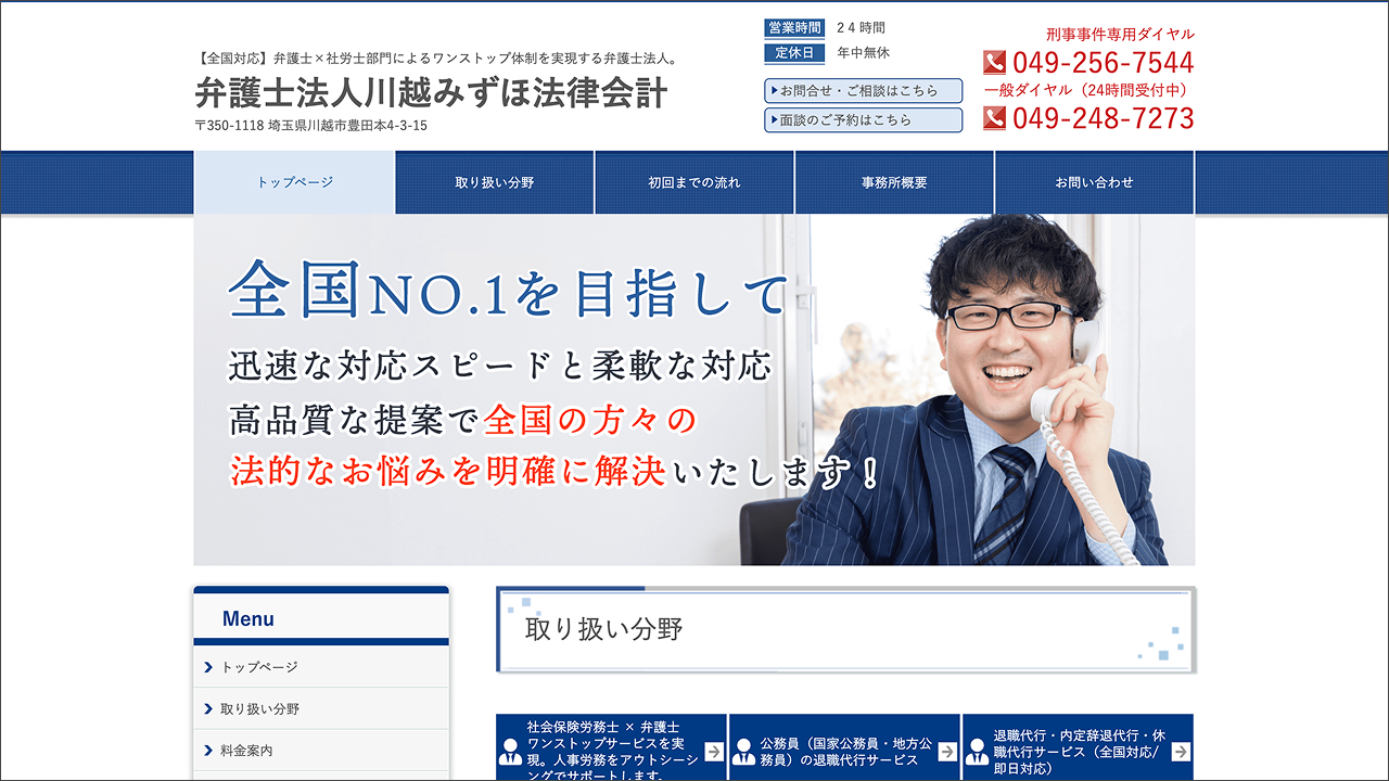 弁護士法人 川越みずほ | 22,000〜77,000円 詳細を見る | 基本料22,000円は弁護士業界でも破格。 内容証明郵便を駆使した強力な意思表示で、退職届の受理を拒むような頑固な会社もしっかり黙らせることができます。 |